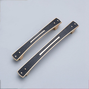 Poignée de porte en alliage de Zinc, en cuivre et cuir noir Antique, accessoires pour armoires, placards et meubles, style américain, 1 pièce